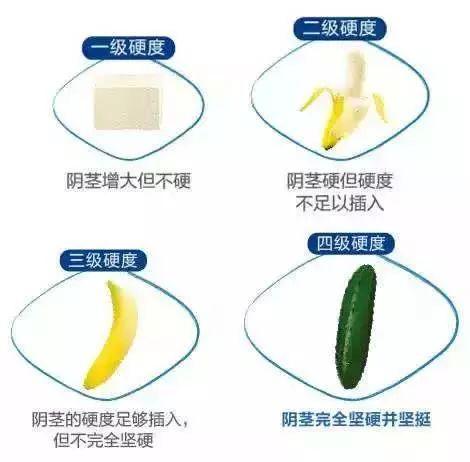 一般来说,一级和二级属于不能完成性生活的层次。三级可以完成性生活,但质量不尽如人意,四级硬度可以给性生活足够的质量。